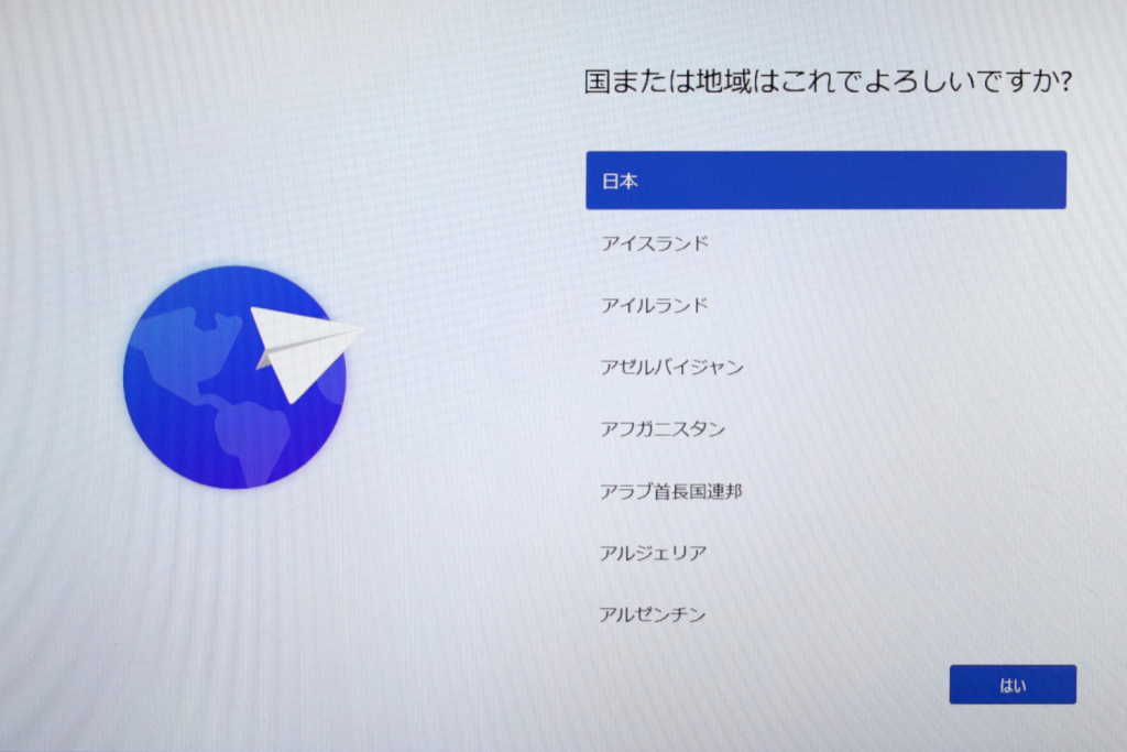日本で購入したので、先頭の日本が選択された状態で表示されます。日本が選択された状態で『はい』をクリックします。