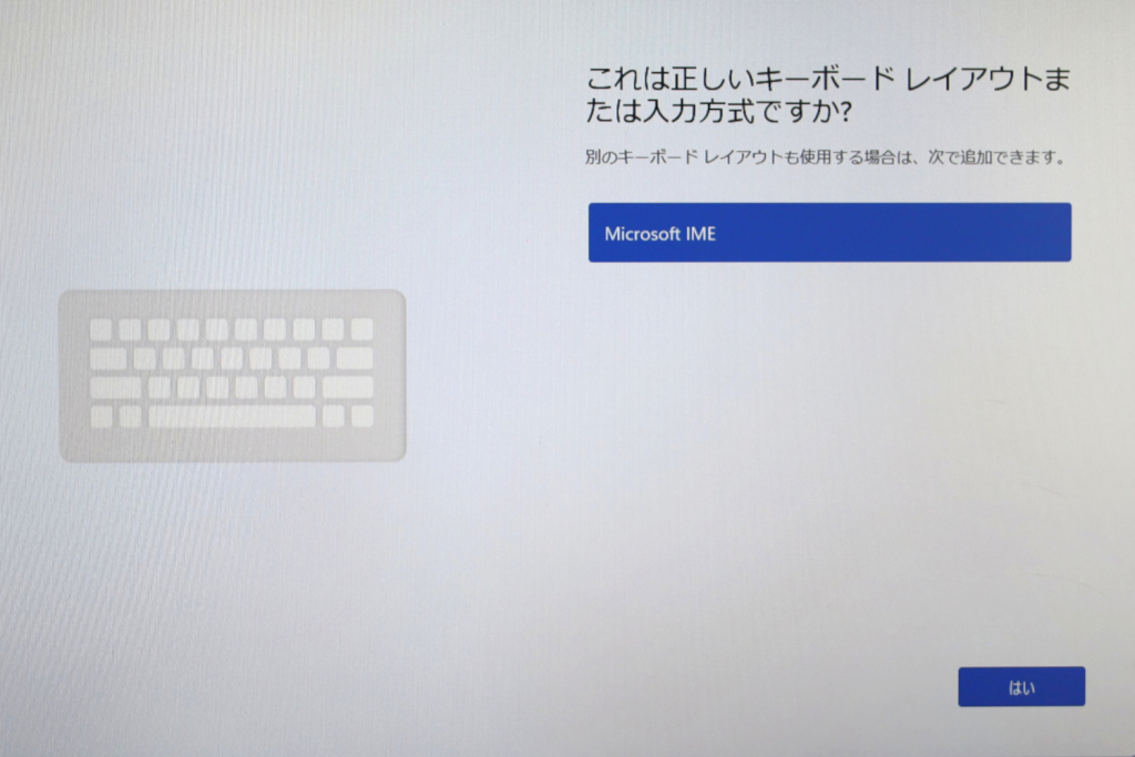 Microsft IMEを選択、というかほかの選択肢はないので、このまま『はい』をクリックします。