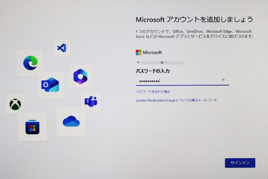 Microsftアカウントのパスワードを入力し『サインイン』をクリックします。