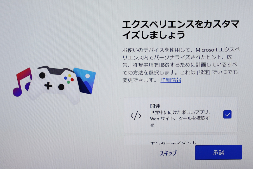 あと、起動までに設定した内容は基本的に後から設定変更することができる項目ばかりです。一度設定したら二度と変えられないいなんて項目はありませんので、あまり悩まずわからない項目は「スキップ」したりして進めましょう。