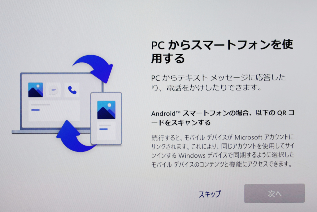 iPhoneを利用している方やAndroidスマートフォンと連携しない方は、『スキップ』をクリックしてください。