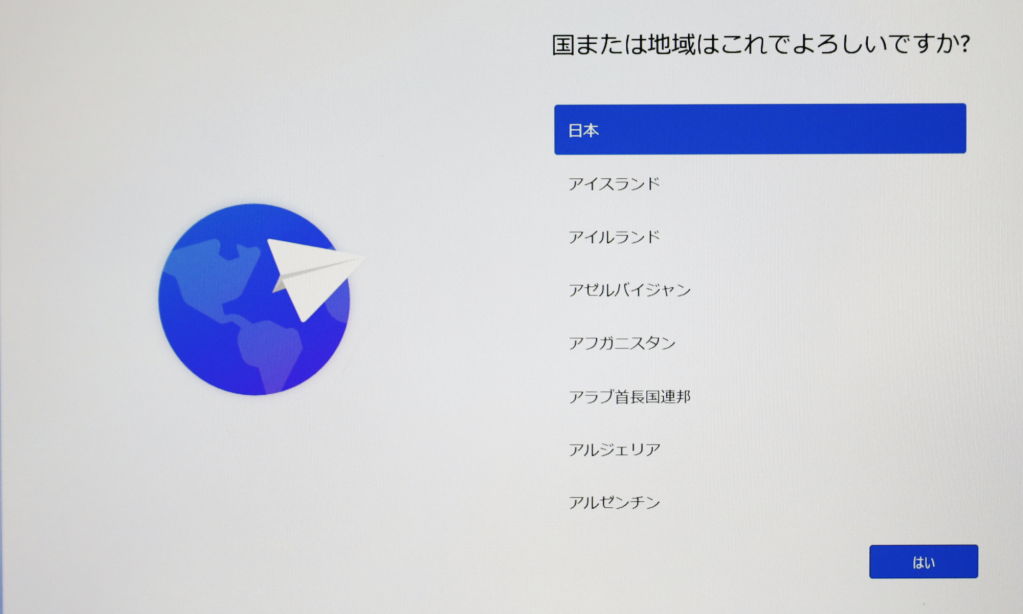日本で購入したので、先頭の日本が選択された状態で表示されます。日本が選択された状態で『はい』をクリックします。