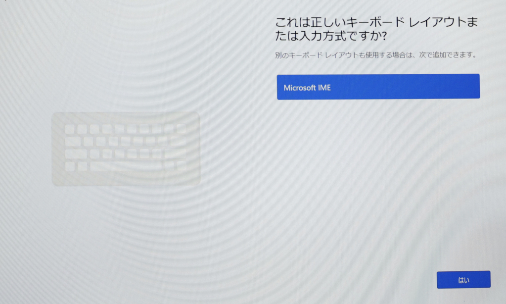 Microsft IMEを選択、というかほかの選択肢はないので、このまま『はい』をクリックします。