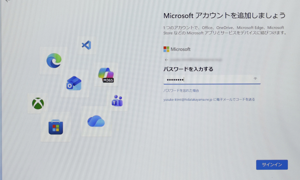 Microsftアカウントのパスワードを入力し『サインイン』をクリックします。