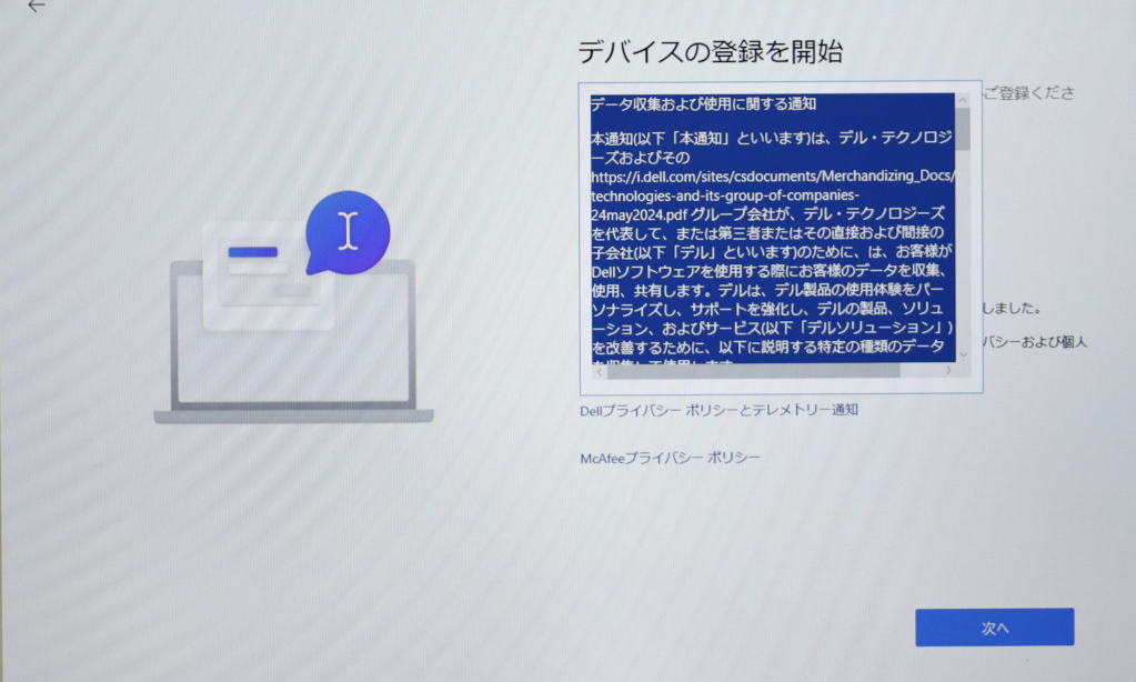 Dellへのデバイス登録を行います。