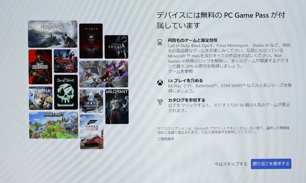 ゲームを使用しない方は『今はスキップする』をクリックしてください。